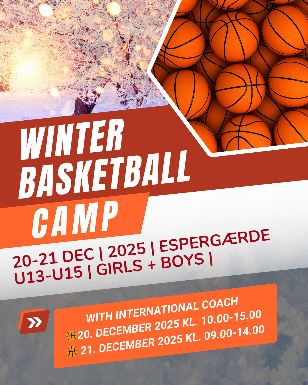 Vi glæder os til at invitere jer til Jule Camp Espegærde 2025 – to intense og sjove dage fyldt med basketball, udvikling og holdånd!