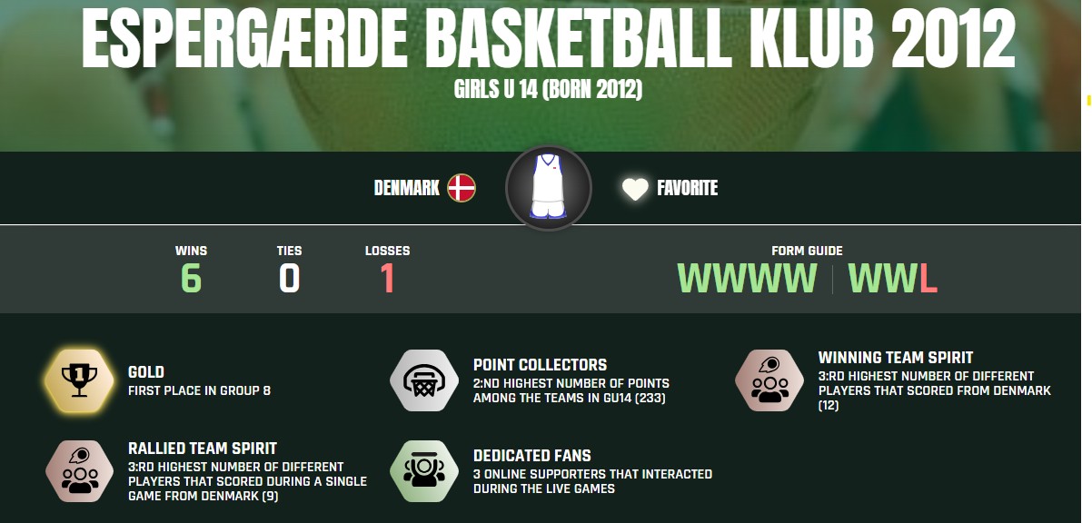 U15 pigerne spillede en imponerende turnering og vandt deres gruppespil efter fire suveræne kampe. På vejen slog de både slovakiske, tyske og svenske hold og spillede sig helt frem til Gruppe A-semifinalen. Her blev det til et snævert nederlag efter en intens kamp, hvor de tyske modstandere med flere flotte 3-pointsscoringer formåede at vende kampen til sidst. En virkelig flot indsats og en præstation, som hele holdet kan være meget stolte af.